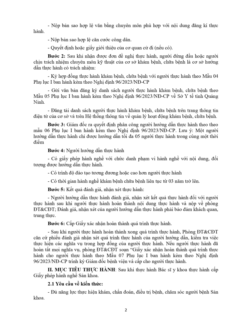 Nội dung thực hành khám bệnh, chữa bệnh đối với bác sĩ cấp giấy phép hành nghề phạm vi hành nghề chuyên khoa sản 2026/03/03 06:50