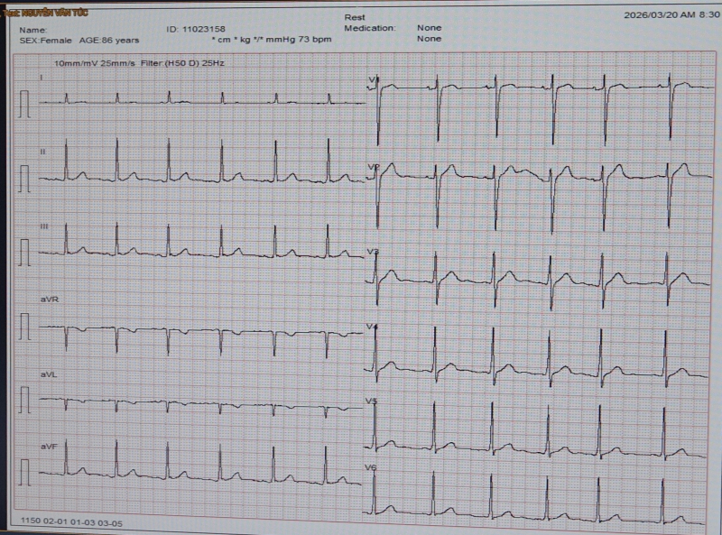Đáng chú ý, trên hình ảnh MRI còn ghi nhận một số tổn thương nhồi máu nhỏ bên bán cấu não trái. Nghi ngờ bệnh nhân có thể có cơn rung nhĩ (do trên hình nahr điện tâm đồ làm nhiều lần không phát hiện rung nhĩ). Bệnh nhân nhanh chóng được đeo Holter điện tâm đồ 24h và kết quả có rung nhĩ cơn– một rối loạn nhịp tim nguy hiểm, có thể tạo cục máu đông trong tim và gây tắc mạch não. Rung nhĩ cơn đa phần ko phát hiện trên điện tâm đồ thường quy. Bệnh nhân đột quỵ được phát hiện rung nhĩ khi bác sĩ có kinh nghiệm đọc tổn thương trên MRI nghi ngờ và cho đeo holter điện tim 24h, 72h.