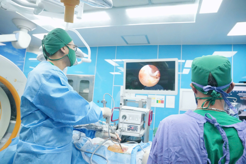 Ca phẫu thuật được thực hiện trong phòng mổ hiện đại của Bệnh viện Bãi Cháy. Ê-kíp phẫu thuật do BSCKII Lê Triệu Linh cùng các đồng nghiệp tiến hành đã áp dụng kỹ thuật phẫu thuật nội soi cột sống một cổng – phương pháp ít xâm lấn, cho phép tiếp cận chính xác vị trí tổn thương, giải ép rễ thần kinh hiệu quả, hạn chế tối đa tổn thương mô lành.