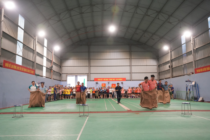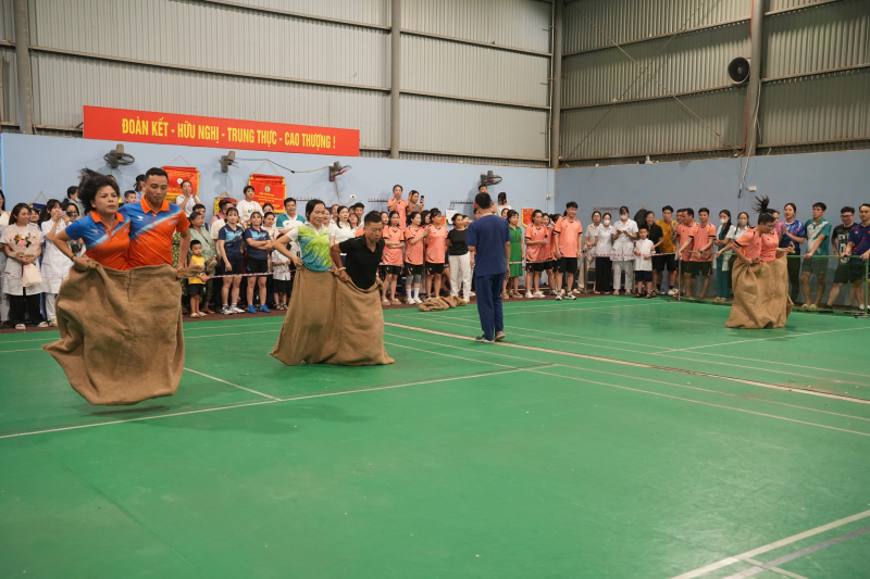 Ngay sau phần khai mạc đã diễn ra môn thi Nhảy bao bố với các hạng mục tranh tài gồm: đôi nam, đôi nữ, đôi nam nữ ở hai nhóm tuổi (≤ 40 tuổi và ≥ 41 tuổi). Trong tiếng reo hò, cổ vũ rộn ràng của các cổ động viên, các cặp vận động viên đã thi đấu hết mình với những bước bật nhảy gắn kết, quyết liệt, khéo léo trên đường đua, lan tỏa tinh thần vui vẻ, năng lượng tích cực trong toàn bệnh viện.