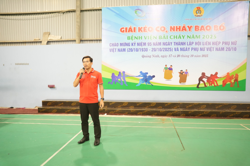 Phát biểu tại lễ khai mạc, BSCKII Hoàng Văn Quyết – Phó Giám đốc Bệnh viện Bãi Cháy nhấn mạnh Giải thể thao Kéo co, Nhảy bao bố Bệnh viện Bãi Cháy năm 2025 là hoạt động thiết thực chào mừng kỷ niệm Ngày Phụ nữ Việt Nam 20/10, đồng thời thúc đẩy phong trào rèn luyện thân thể, nâng cao sức khỏe, tạo không khí thi đua sôi nổi, tinh thần đoàn kết, năng động trong cán bộ, viên chức và người lao động toàn bệnh viện.