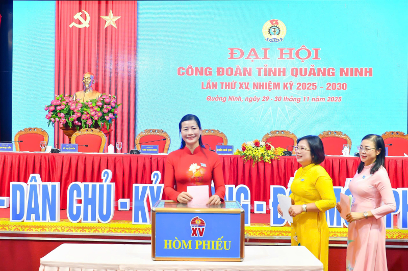 Bỏ phiếu bầu ban chấp hành LĐLĐ tỉnh Quảng Ninh khoá XV, nhiệm kỳ 2025 - 2030.