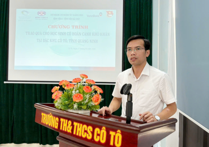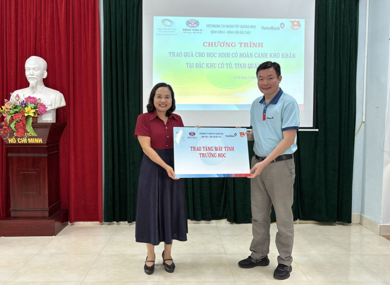 Thăm trường Trường Tiểu học và THCS Cô Tô, Đoàn công tác trao tặng 01 bộ máy tính, 30 suất quà với tổng giá trị 18 triệu đồng cho các hộ gia đình và học sinh có hoàn cảnh khó khăn. Những quà tặng hỗ trợ mang ý nghĩa tiếp sức động lực để các em học sinh vượt khó vươn lên trong học tập.