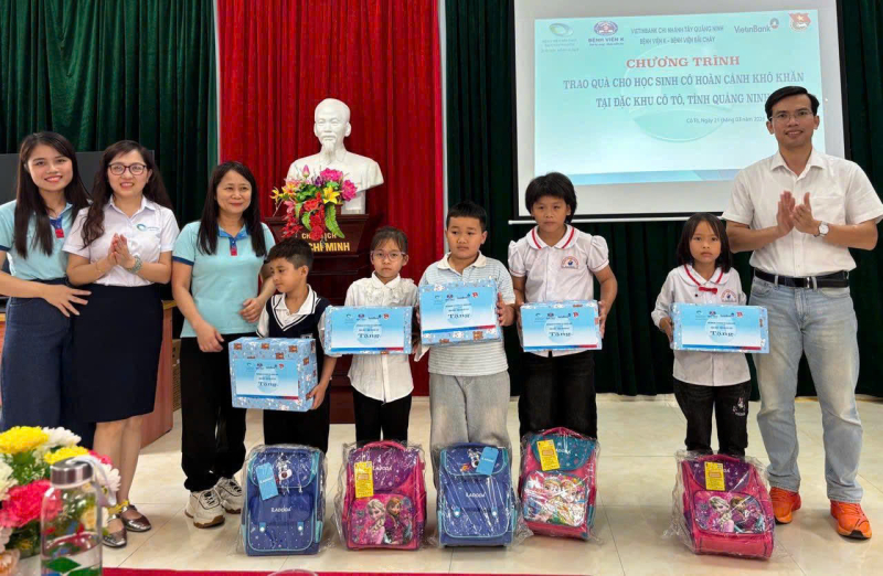 Bệnh viện Bãi Cháy phối hợp với Ngân hàng Vietinbank chi nhánh Tây Quảng Ninh tặng quà học sinh có hoàn cảnh đặc biệt tại Trường Tiểu học và THCS Cô Tô