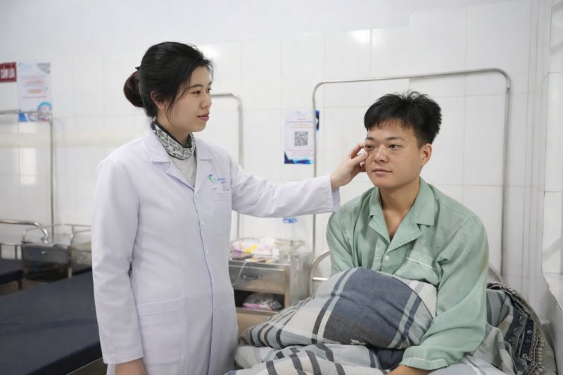 Bác sĩ Khoa mắt thăm khám cho bệnh nhân mắc bệnh thông động mạch cảnh - xoang hang