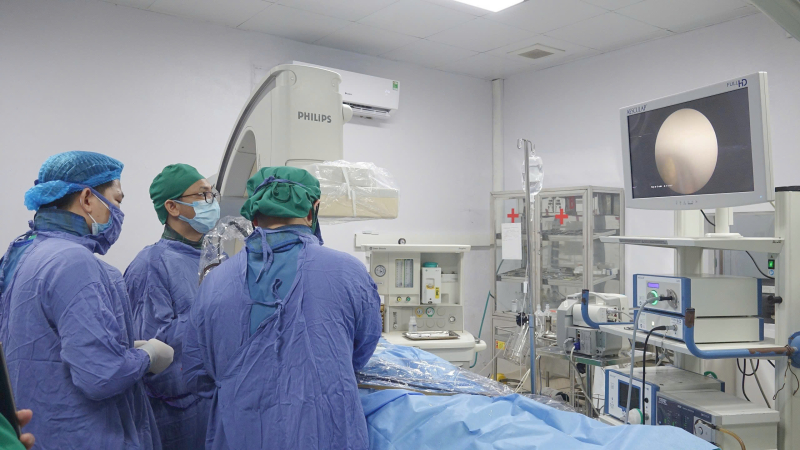Tại Bệnh viện Bãi Cháy, quy trình tán sỏi qua da được thực hiện với sự hỗ trợ của hệ thống chẩn đoán hình ảnh hiện đại như máy chụp mạch số hóa xóa nền DSA và camera nội soi. Toàn bộ quá trình được thực hiện bởi đội ngũ bác sĩ giàu kinh nghiệm, chuyên môn cao, đảm bảo an toàn và hiệu quả điều trị cho người bệnh.