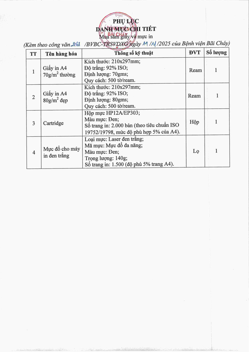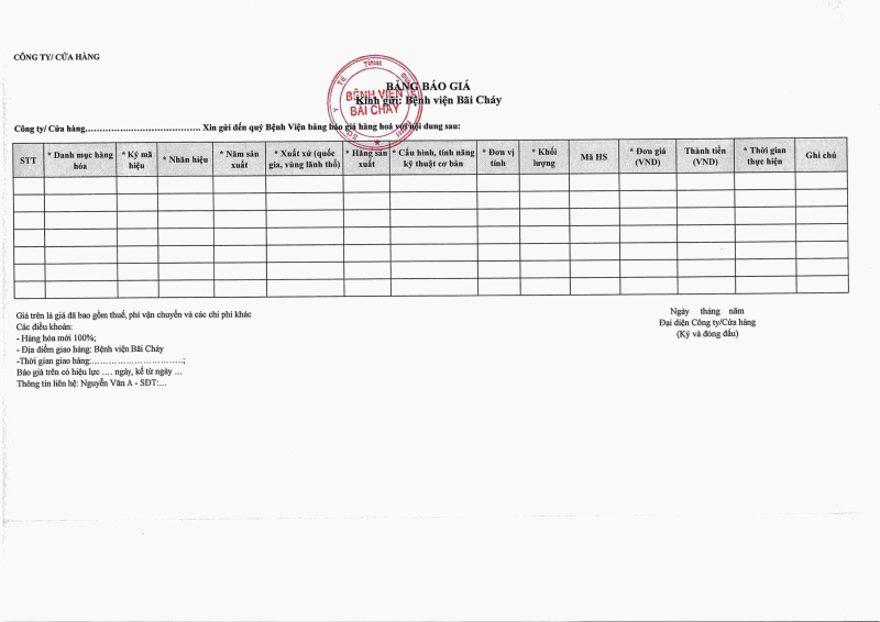 Thông báo số 2336 về nhu cầu mua sắm ấn chỉ phục vụ công tác chuyên môn tại bệnh viện bãi cháy năm 2026