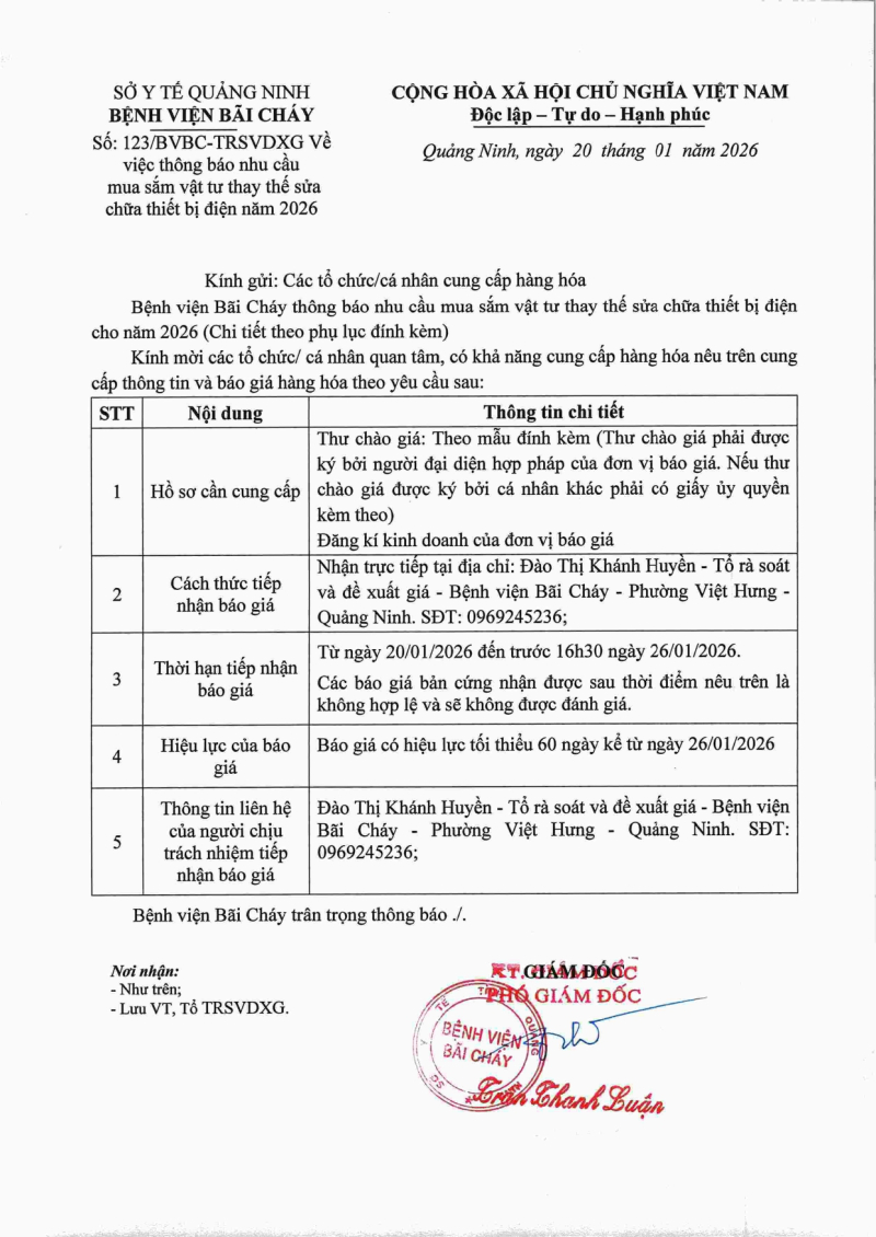 Thông báo 123 nhu cầu mua sắm vật tư thay thế sửa chữa thiết bị điện năm 2026 2026/01/21 08:12 Thông báo 123 nhu cầu mua sắm vật tư thay thế sửa chữa thiết bị điện năm 2026