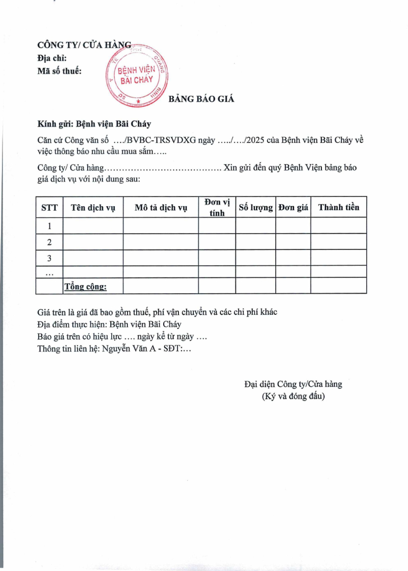 Thông báo 1731 nhu cầu thuê bảo dưỡng định kỳ các trang thiết bị phòng cháy chữa cháy