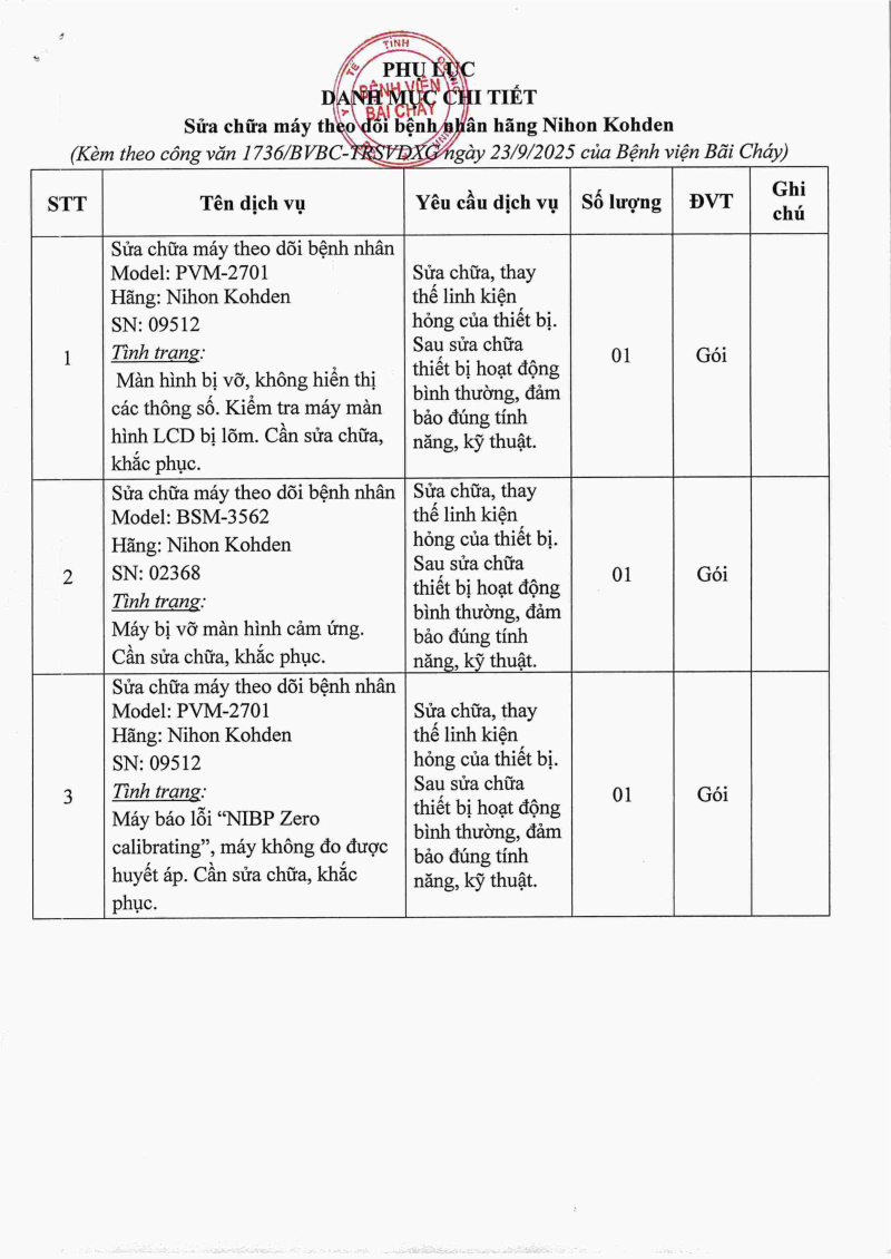 Thông báo 1746 nhu cầu sửa chữa máy theo dõi bệnh nhân 2025/09/23 08:29 Thông báo 1746 nhu cầu sửa chữa máy theo dõi bệnh nhân