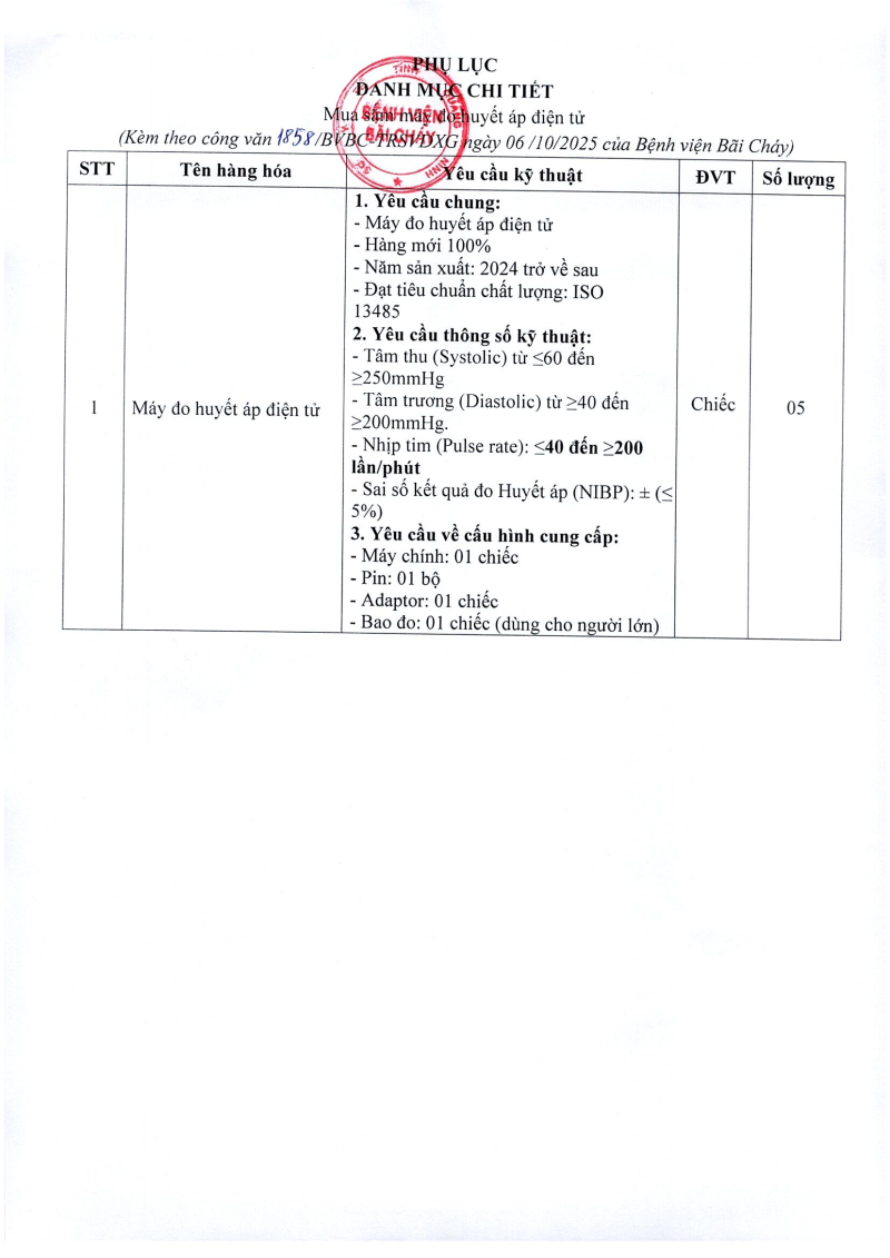 Thông báo 1858 nhu cầu mua sắm máy đo huyết áp điện tử 2025/10/06 09:32 Thông báo 1858 nhu cầu mua sắm máy đo huyết áp điện tử