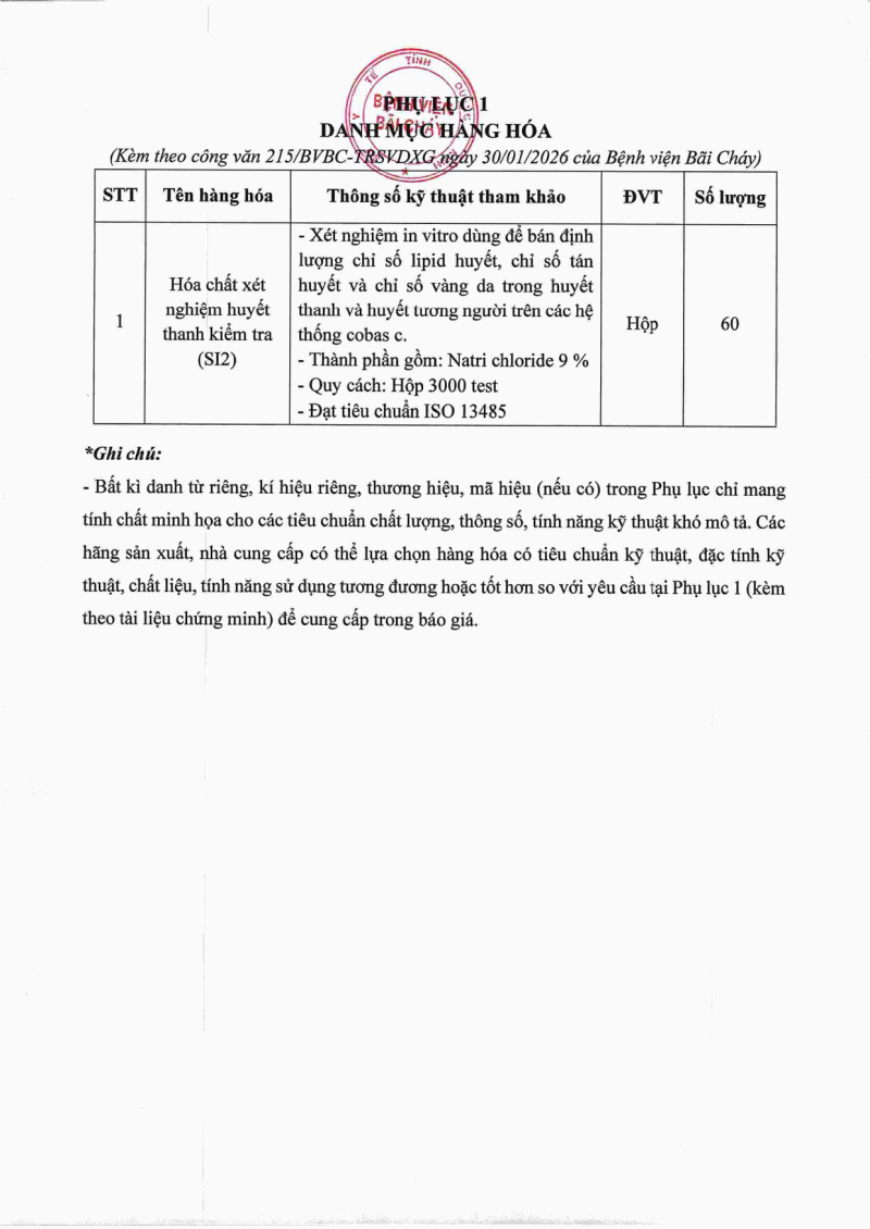 Thông báo 215 mua sắm hóa chất xét nghiệm phục vụ công tác chuyên môn năm 2026