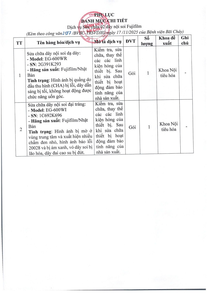 Thông báo 2187 nhu cầu sửa chữa dây nội soi 2025/11/18 07:01 Thông báo 2187 nhu cầu sửa chữa dây nội soi