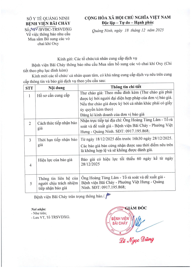 Thông báo 2487 nhu cầu mua sắm bổ sung các vỏ chai khí oxy 2025/12/19 09:13 Thông báo 2487 nhu cầu mua sắm bổ sung các vỏ chai khí oxy