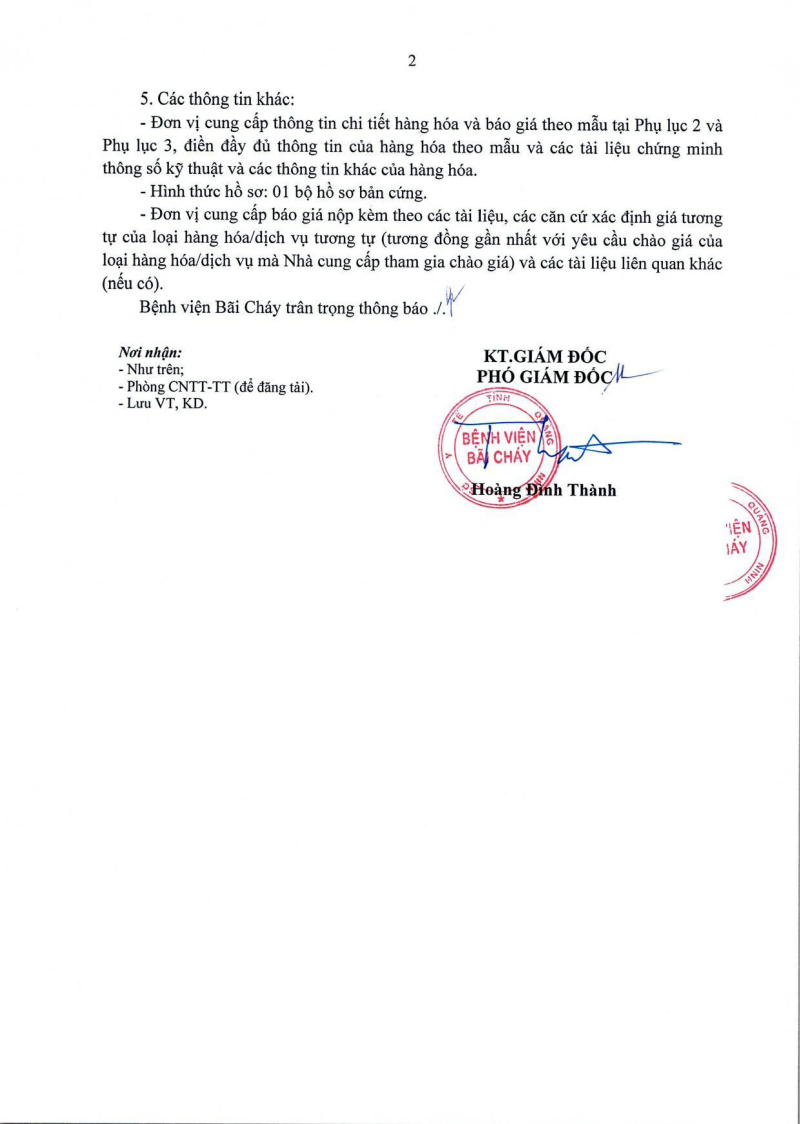 Thông báo 2487 nhu cầu mua sắm bổ sung các vỏ chai khí oxy