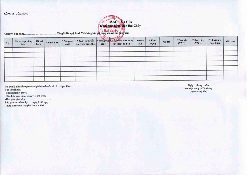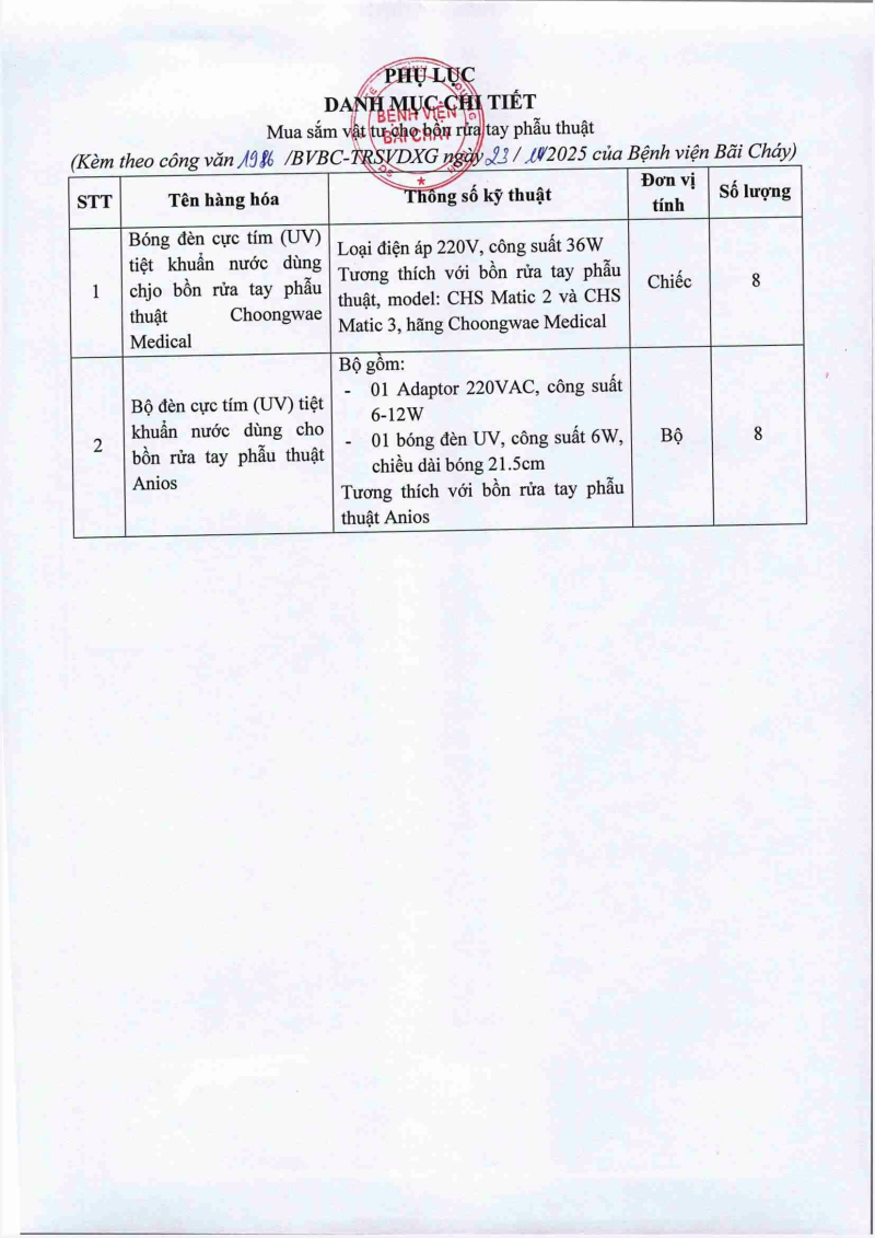 Thông báo 1986 về nhu cầu mua sắm vật tư cho bồn rửa tay phẫu thuật