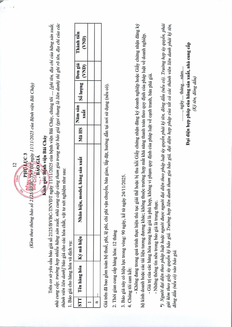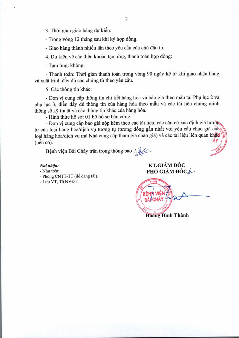 Thông báo 2487 nhu cầu mua sắm bổ sung các vỏ chai khí oxy