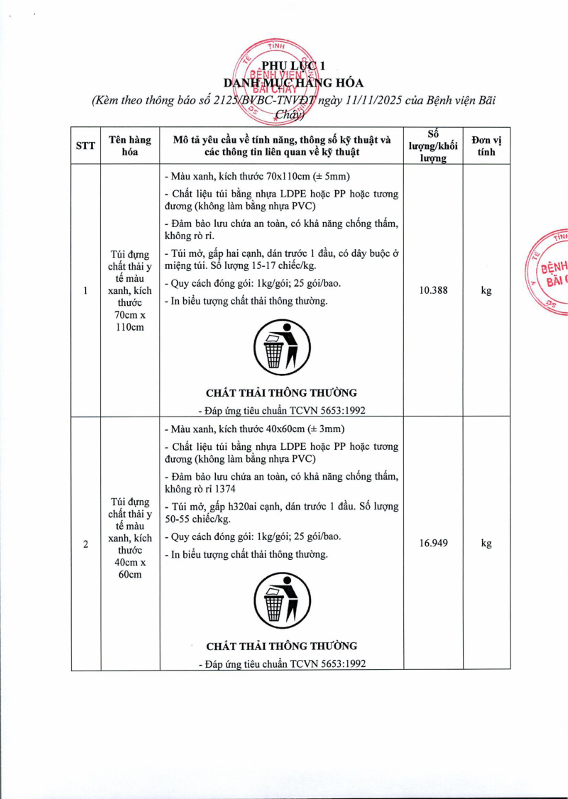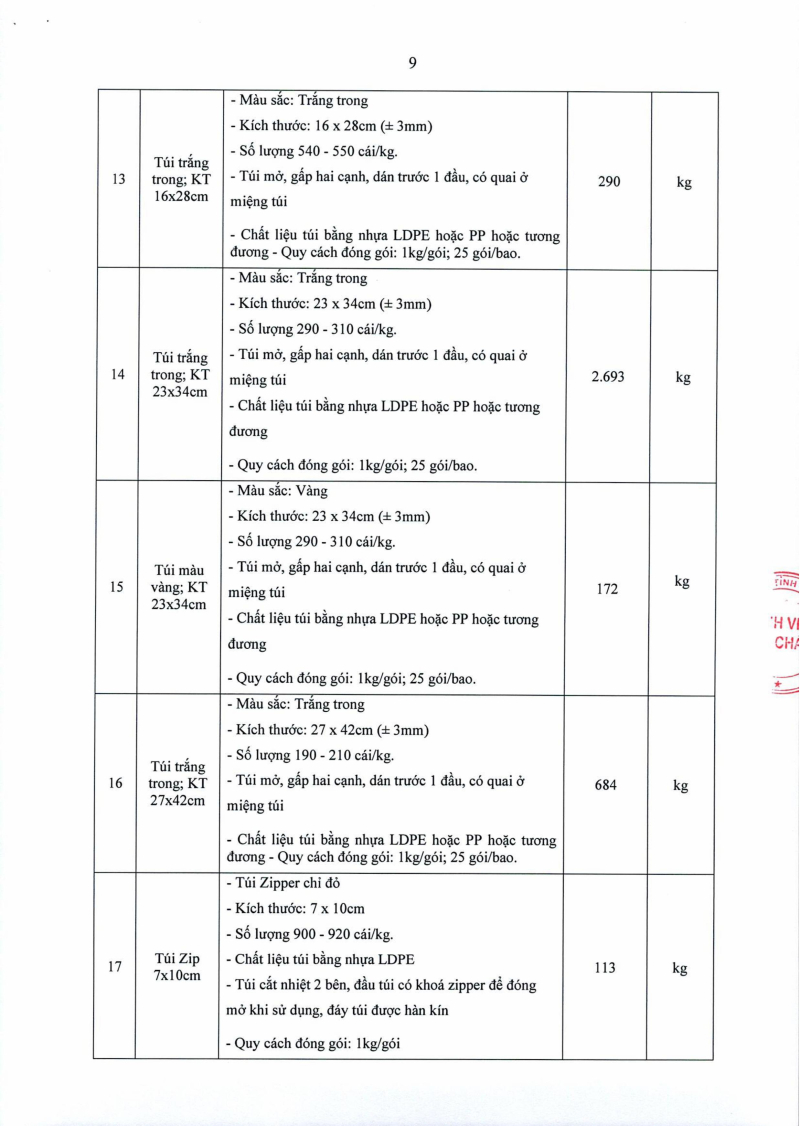 Thông báo số 2125 về nhu sắm túi các loại phục vụ thường xuyên năm 2026,2027