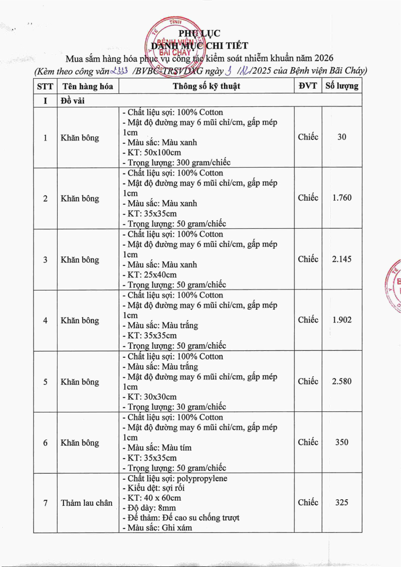 Thông báo số 2333 về nhu cầu mua sắm hàng hóa phục vụ công tác kiểm soát nhiễm khuẩn năm 2026 2025/12/04 00:14