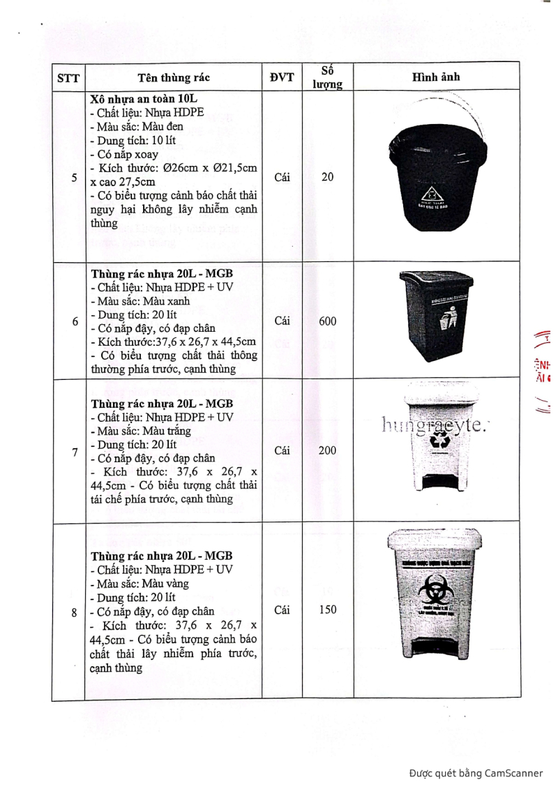 Thông báo số 2340 về nhu cầu báo giá thùng rác phục vụ công tác phân loại, thu gom và vận chuyển chất thải y tế năm 2026 2025/12/04 04:12