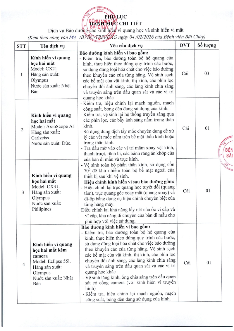 Thông báo số 241 về nhu cầu dịch vụ bảo dưỡng các kính hiển vi quang học và sinh hiển vi mắt 2026/02/05 01:56