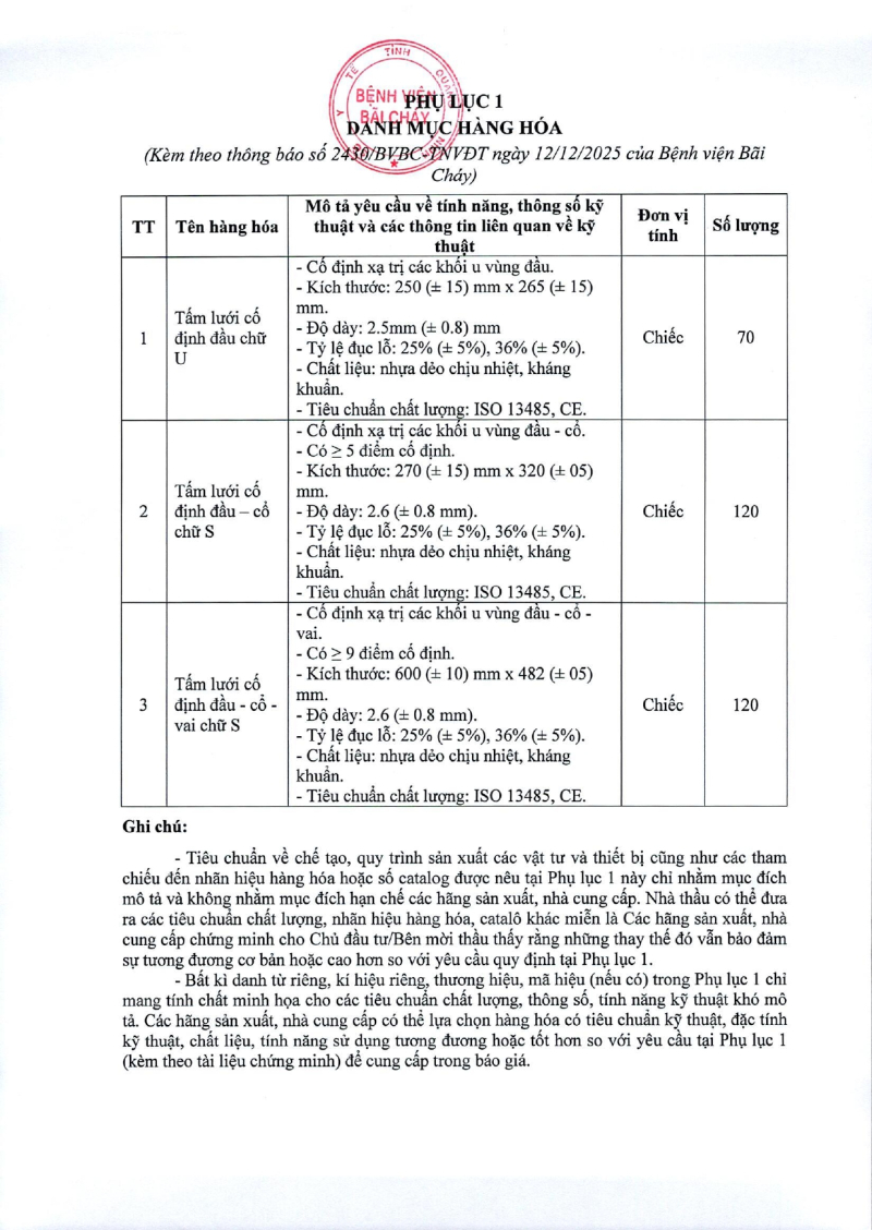 Thông báo số 2430 về nhu cầu mua sắm mặt nạ xạ trị phục vụ công tác chuyên môn