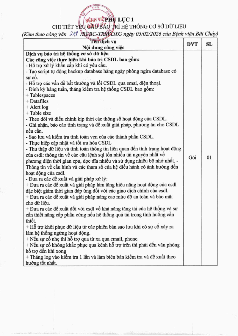 Thông báo số 248 về nhu cầu bảo trì hệ thống cơ sở dữ liệu