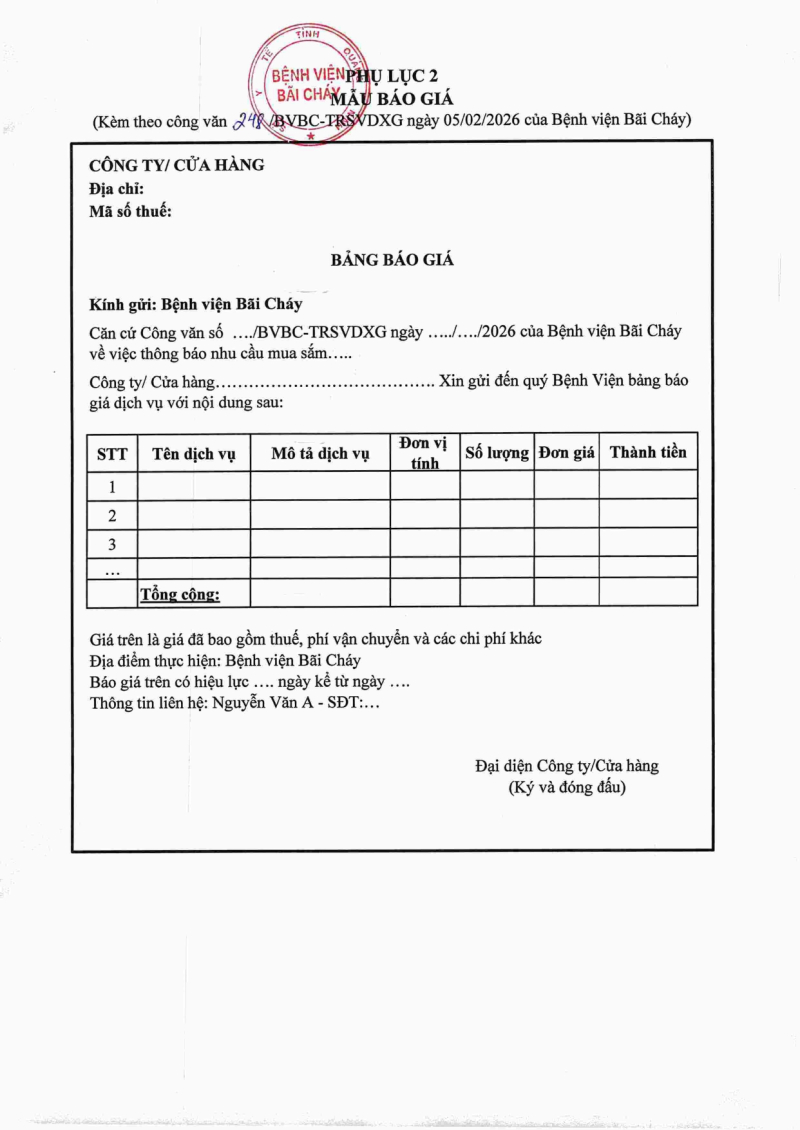 Thông báo 635 về nhu cầu mua sắm vật tư y tế phục vụ công tác chuyên môn