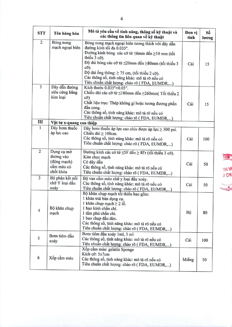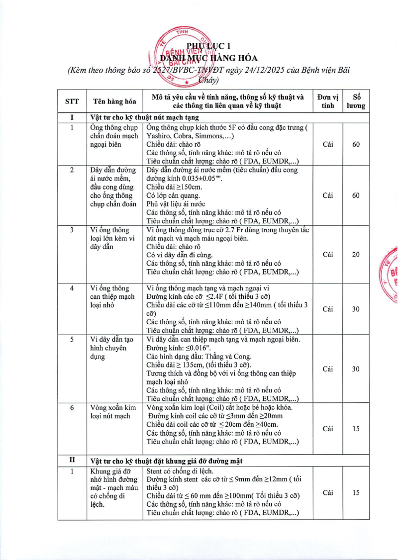 Thông báo số 2527 về nhu cầu mua sắm vật tư y tế can thiệp cho khoa chẩn đoán hình ảnh năm 2026 -2027 2025/12/24 03:27