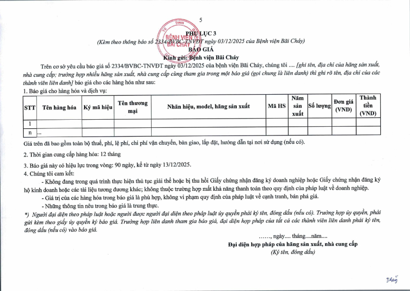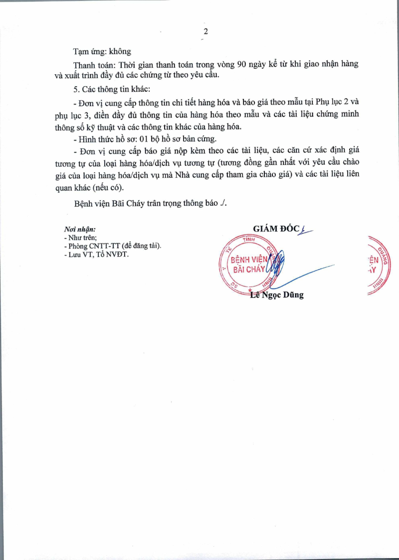 Thông báo 2487 nhu cầu mua sắm bổ sung các vỏ chai khí oxy