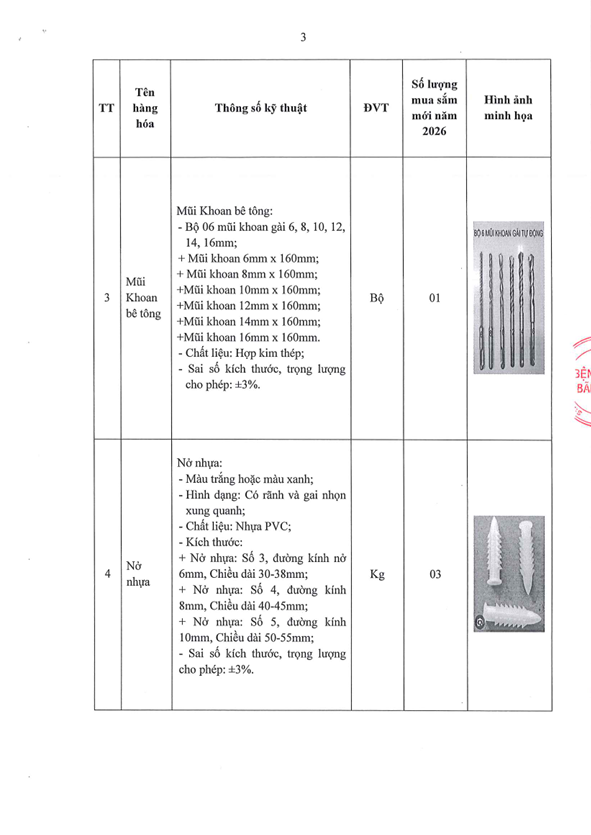 Thông báo 635 về nhu cầu mua sắm vật tư y tế phục vụ công tác chuyên môn