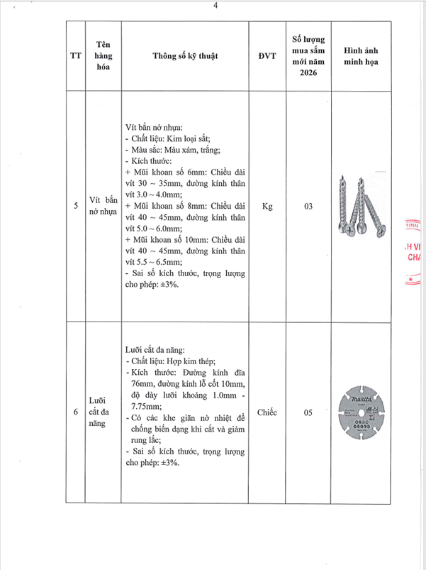 Thông báo số 361 về nhu cầu mua sắm dụng cụ và phụ kiện cửa