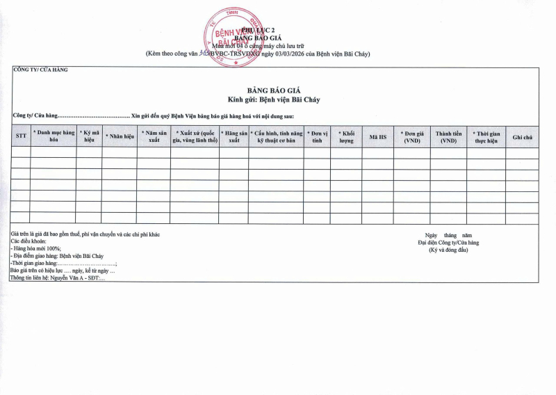 Thông báo 635 về nhu cầu mua sắm vật tư y tế phục vụ công tác chuyên môn