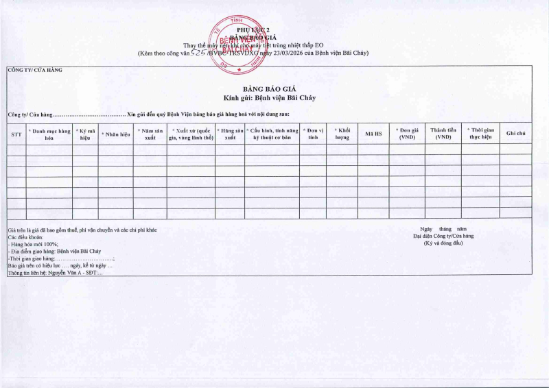 Thông báo 635 về nhu cầu mua sắm vật tư y tế phục vụ công tác chuyên môn