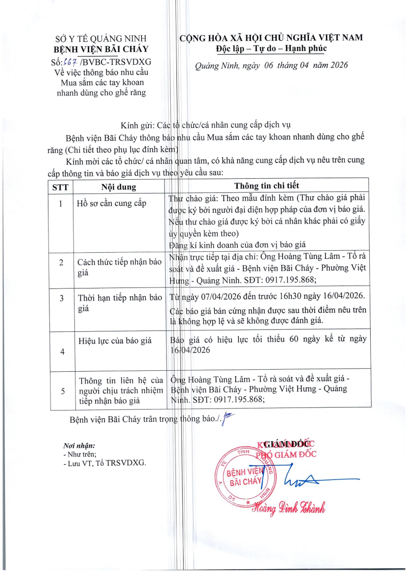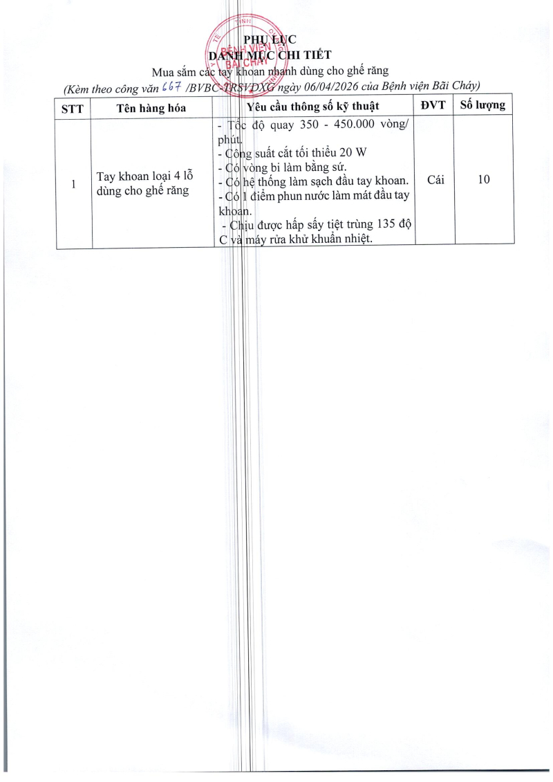 Thông báo số 667 về nhu cầu mua sắm các tay khoan nhanh dùng cho ghế răng