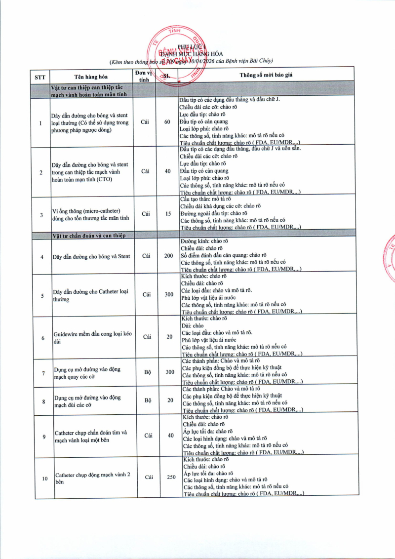 Thông báo số 709 về nhu cầu mua sắm vật tư can thiệp mạch, xquang can thiệp 2026,2027 2026/04/10 13:52